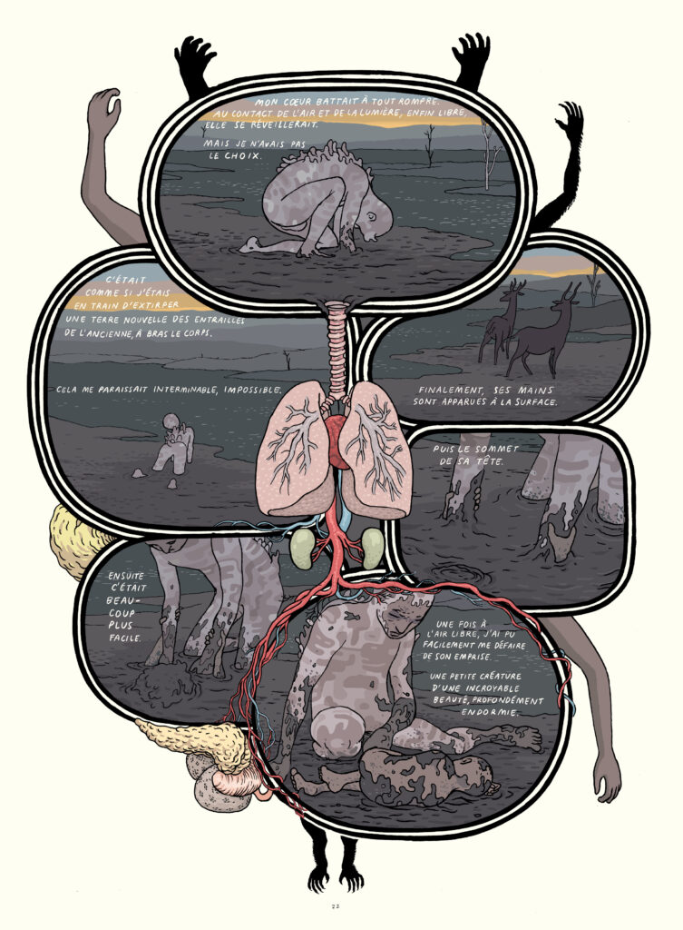 Mélangeant science-fiction, mythologie et géopolitique, Tongues peut être considéré comme le magnum opus d’Anders Nilsen, un récit d’une ampleur rare et d’une ambition folle. Sur le plan graphique, l’auteur américain s’est surpassé et sa narration, au sein de laquelle s’entremêlent personnages, lieux et époques, est portée par un dessin à la fois maîtrisé et explosif, produisant des pages d’une beauté folle et subjuguante.